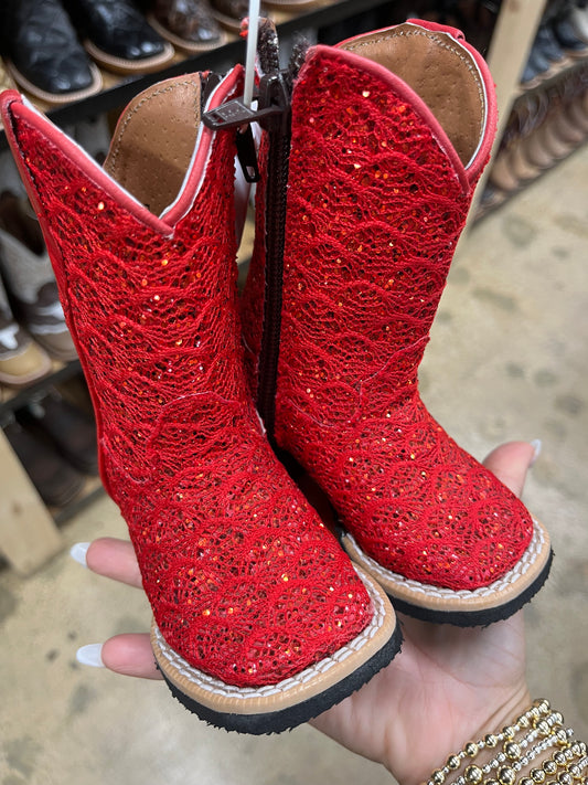 Tanner Mark Women’s Crackle Hot Pink Knee High Cowgirl Boots with Fashion Heel