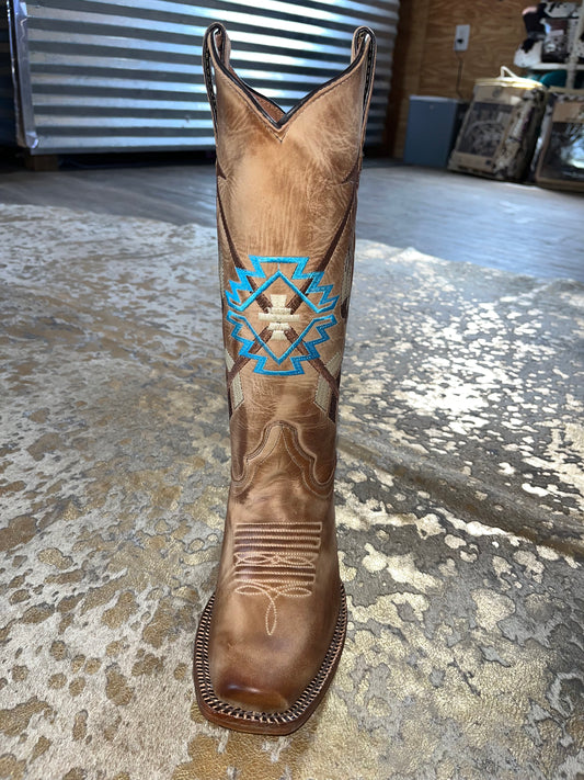Tanner Mark Women’s Santa Fe Square Toe Leather Boots in Burnished Sand