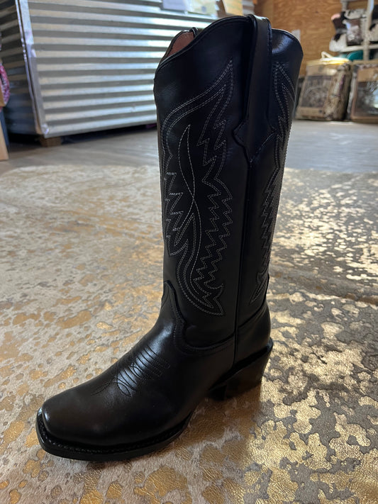 Tanner Mark Dallas Gold Square Toe Black Cowhide Leather Boots